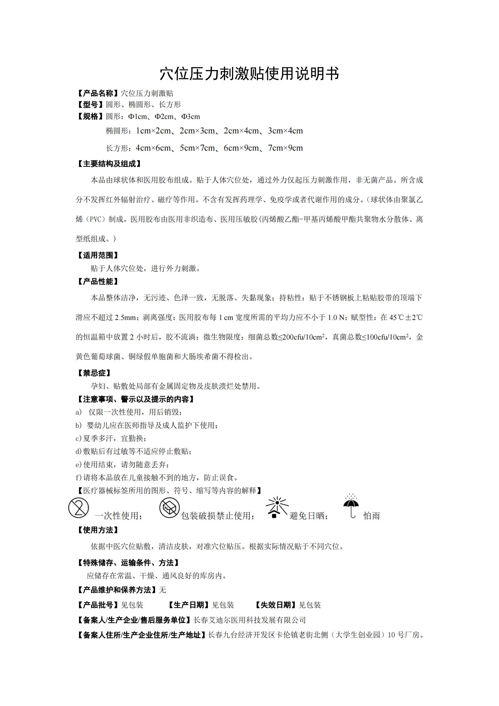 適用范圍:貼于人體穴位處,進行外力刺激。